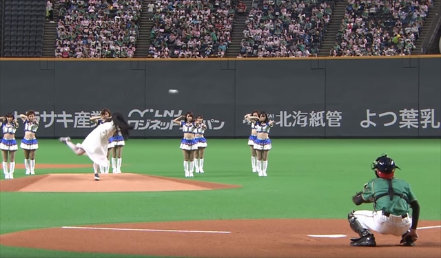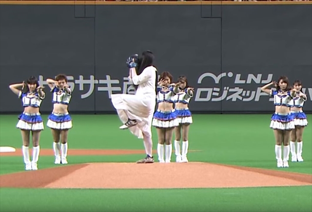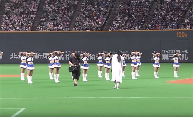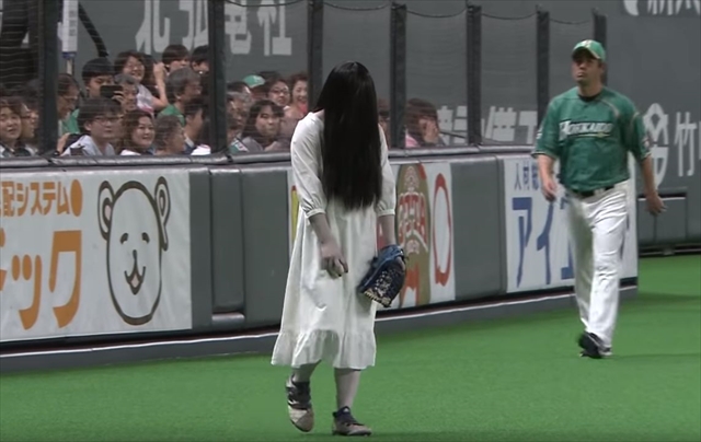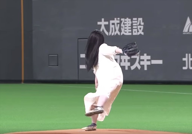 映画「リング」でお馴染みの貞子が5月12日、北海道・札幌ドームで開催された日本ハム対西武の試合の始球式に登場!豪快なフォームから繰り出す“呪い球”に球場が騒然とするひと幕がありました。