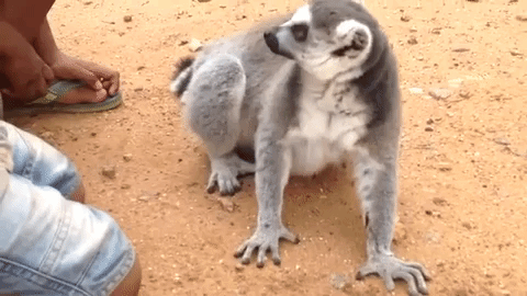 背中をかいてもらってご満悦のキツネザル。子供達が手をとめると、「もっとかいてよ!」と言わんばかりに猛アピールします。