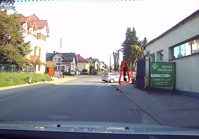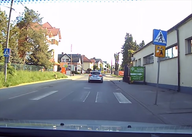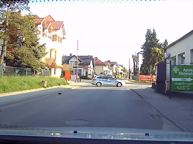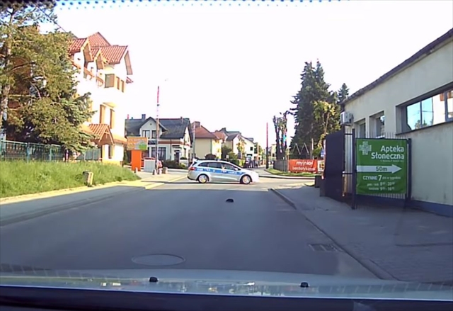 ポーランドのとある道。目の前をパトカーが走っています。
