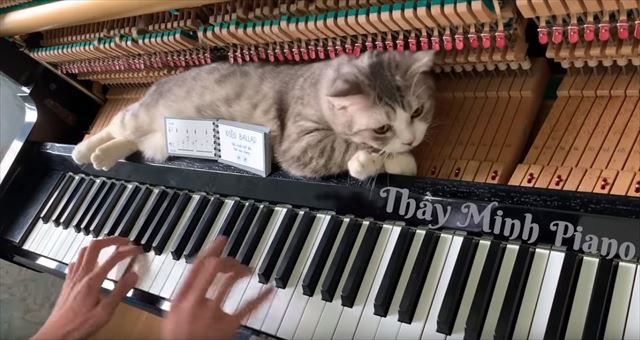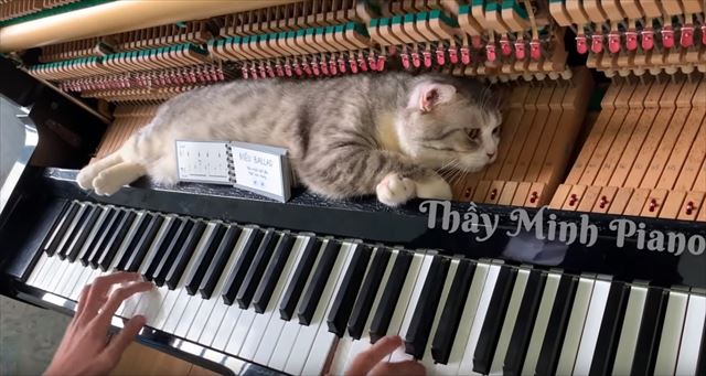 動画が撮影されたのは、ベトナムのとあるご家庭。ニャンコが気持ち良さそうに寝ているところで、飼い主さんがピアノを弾き始めました。