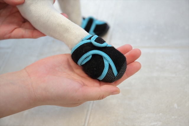 また、表面素材はストレッチ性に優れ、靴底は柔らかいため足への負担も少ないです。足腰の弱いコや、ケガをしているコにも安心して使用できます。
