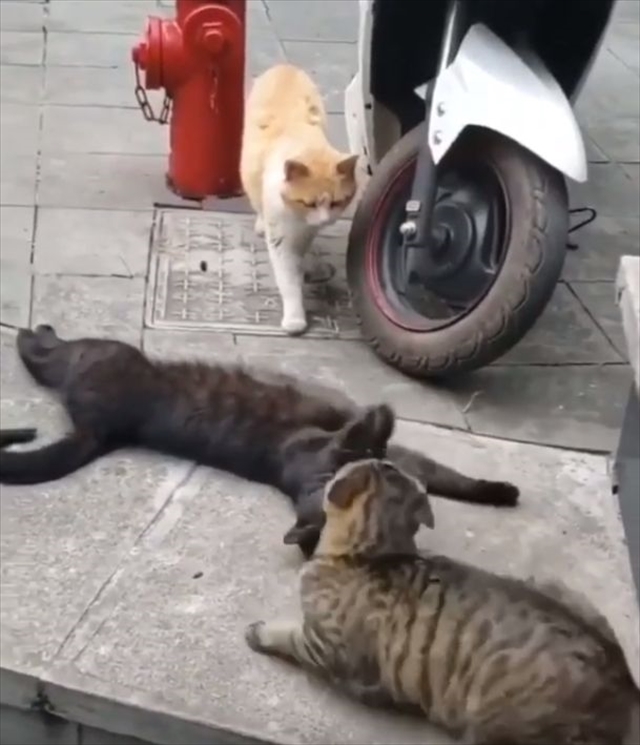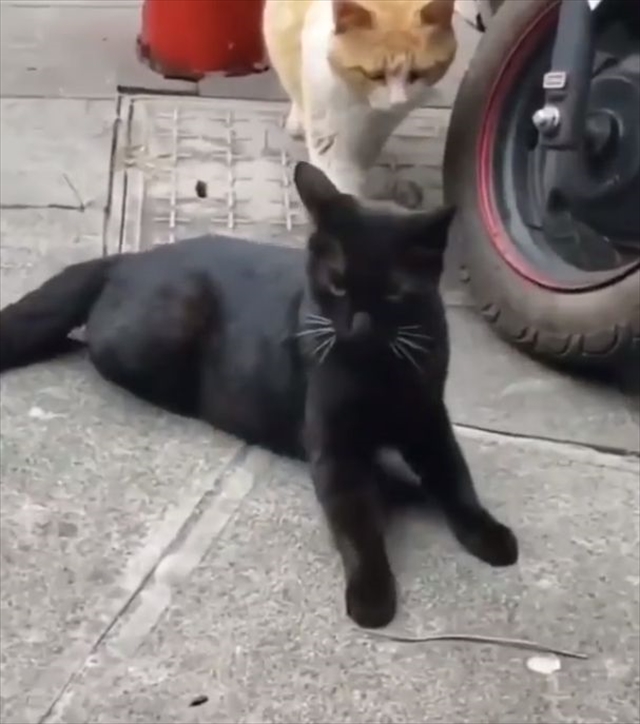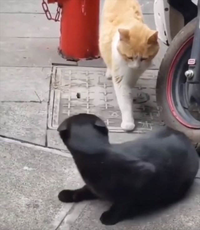 このニャンコたちが一体どういう関係なのかは謎のままですが、見られてはいけないところを見られたというのは、間違いなさそうです。ぜひ動画もご覧ください!