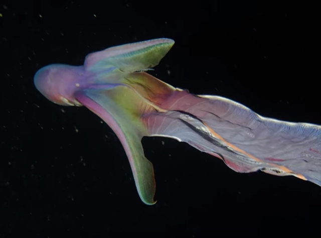 形や色をめくるめく変えながらゆらゆらと泳ぐ“ムラサキダコ”。その神秘的な姿をとらえた映像をご紹介します!