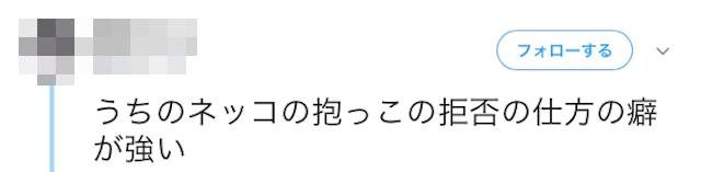 飼い主さんが思わず「抱っこの拒否の仕方の癖が強い」と呟いてしまった、そのニャンコの全身がこちらです。