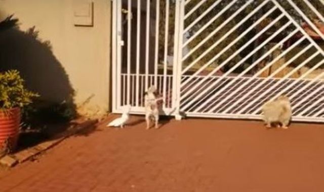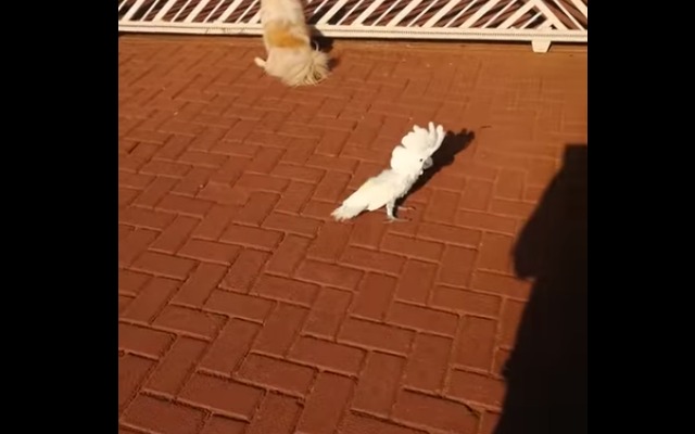 驚くべきことに、オウムが本当の犬のようにキャンキャン吠えていたんです。撮影した飼い主さんによると、このオウムは19年間愛すべき家族の一員として、犬たちと一緒に育ってきたのだそうです。