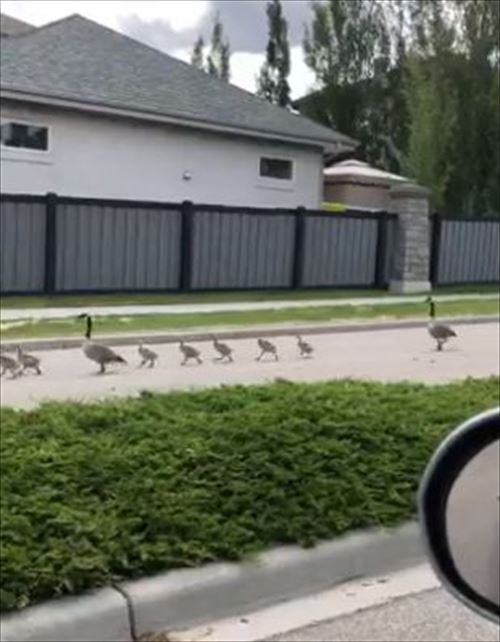 Goodness gracious, that's a big gaggle of geese and goslings! Thanks to Katie Dorey for sharing this adorable video from Edmonton.