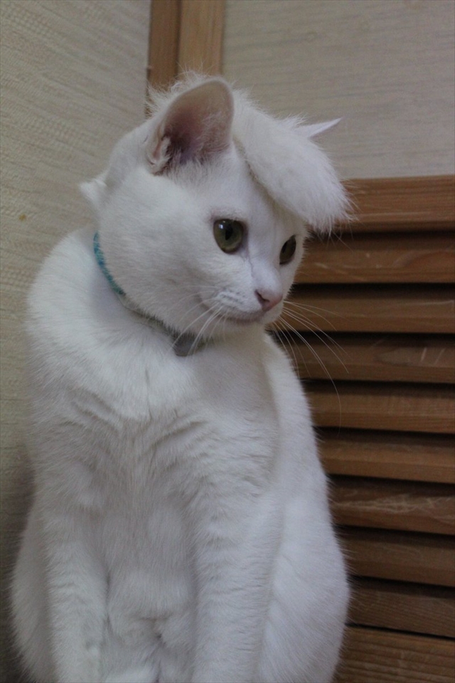この渋い横顔…。髪の毛がちょこんとあるだけで随分とニャンコの雰囲気も変わりますね(笑)