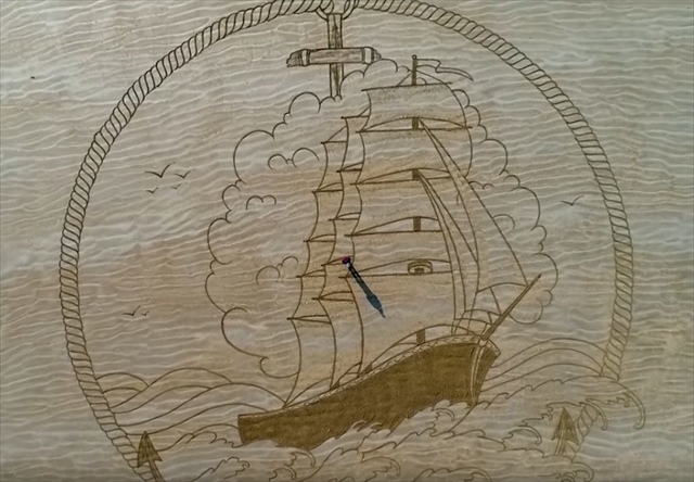 徐々に全景が見えてきました。小さいですが、カモメ?のように見える鳥も描かれており、細部へのこだわりが垣間見えます。