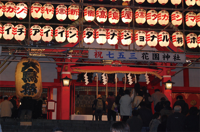 東京新宿にある神社。関東三大酉の市のひとつ。江戸時代から新宿の守り神として祀られています。酉の市には毎年60万人もの人が訪れます。日本最大級の繁華街歌舞伎町のすぐそばで、神社のすぐ裏は吉本興業の東京本社があります。