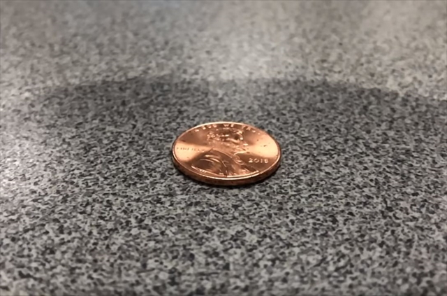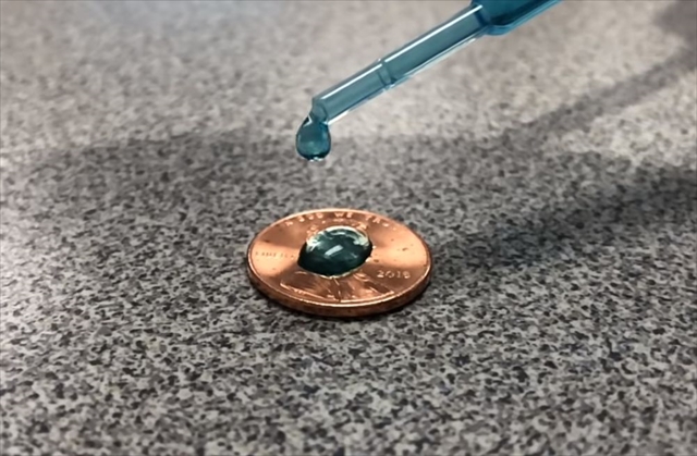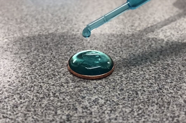 1枚のコイン。この表面に液体を少しずつたらしていきます。