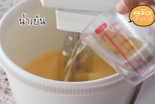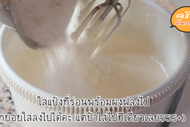 出典:YouTube(ขนมปุยฝ้ายแตงโม Steamed sponge cake l ครัวป้ามารายห์)