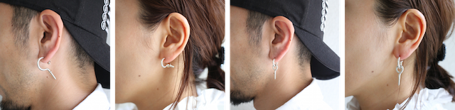『フック』型のピアスもめっちゃオシャレ!!こちらは、日常に溢れる金具の一種である、壁などにねじこんで物を吊り下げるために用いる「ヒートン」と、物を引っ掛けるための“?”型の「ヨート」を表現した2タイプです。