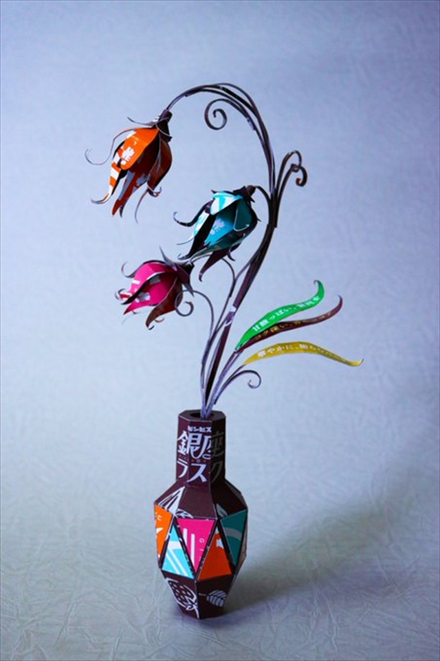 空箱でここまで作れるの!?銀座ラスクの空箱で作った花と花瓶がTwitterに投稿され、そのクオリティの凄まじさが大きな反響を呼んでいます!