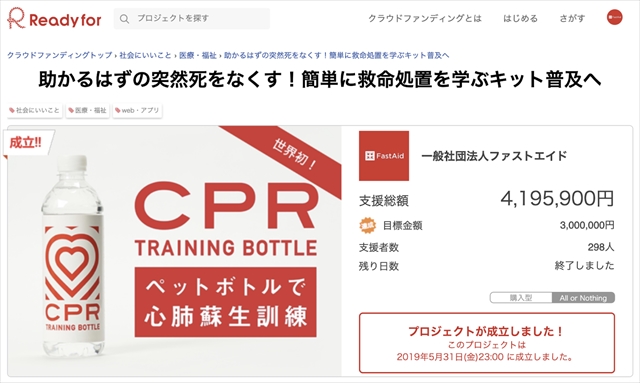 「CPRトレーニングボトル 訓練シート」は、一般社団法人ファストエイドが一般販売を開始。ペットボトルで手軽にCPR(心肺蘇生)訓練をすることが可能な画期的な製品です。