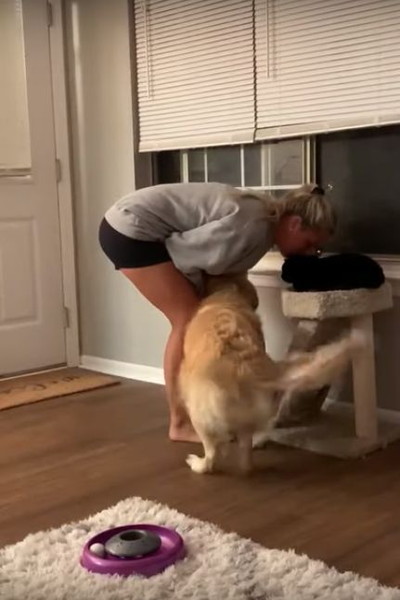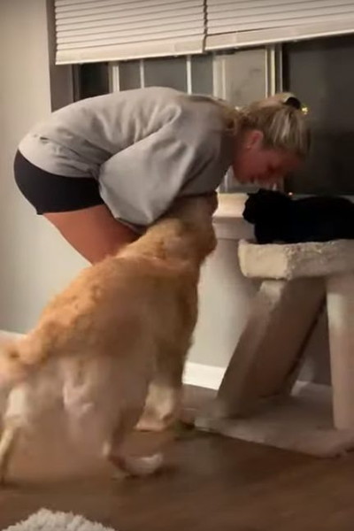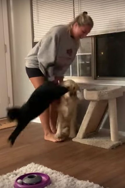 「猫じゃなくて私を見て~」飼い主を振り向かせようとするワンコが必死すぎ!
