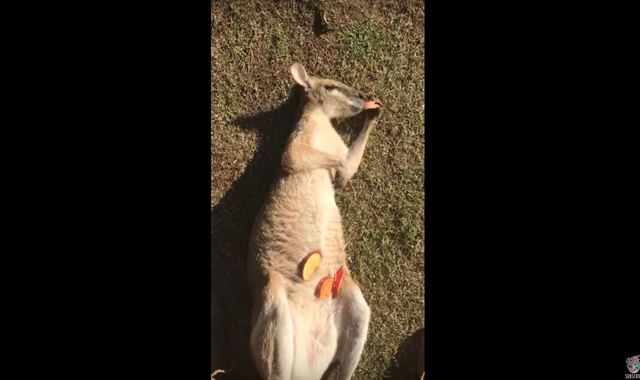 この見事なまでにダラケきったワラビーの姿をぜひ動画でご覧ください。