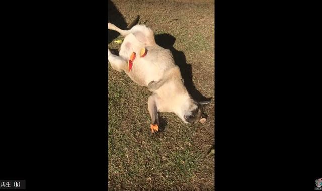 気持ち良さそうに仰向けに寝転がっているこの動物、何だと思いますか?