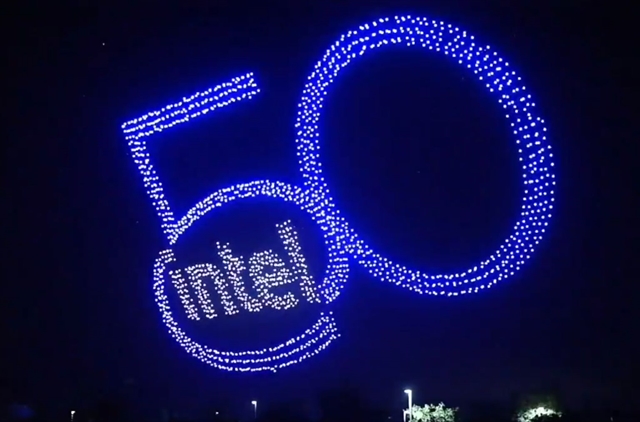 最後はインテルの50周年を祝う形に。ドローンでここまでできるなんて驚きました。
