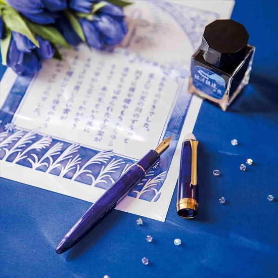 万年筆はラメ入りでキラキラしているので、作品の中で描かれている空をイメージしたインクを使用するのにぴったりです。