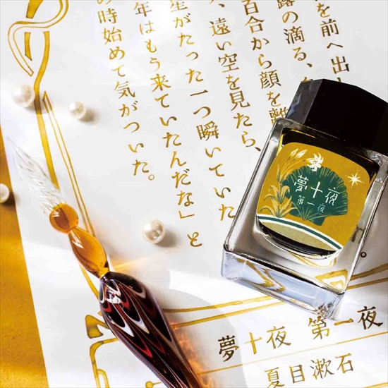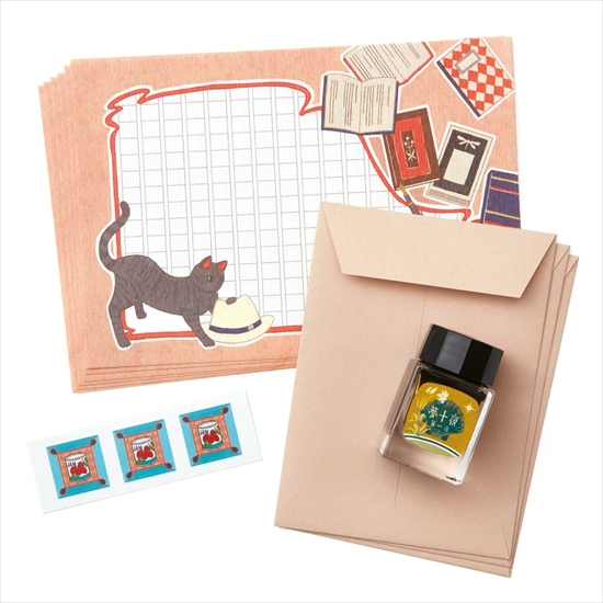 日本の近現代文学を代表する文豪の3つの文学作品をイメージしたインクと、文豪自身と彼らにまつわる物事をモチーフにしたレターセットは、作品同様に味わい深い仕上がりです。