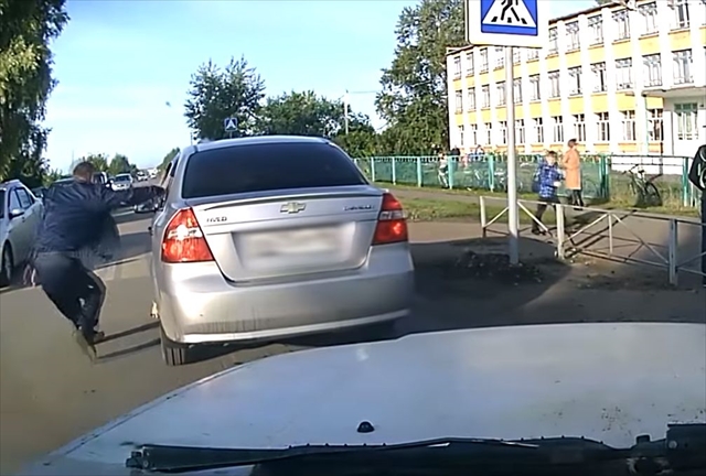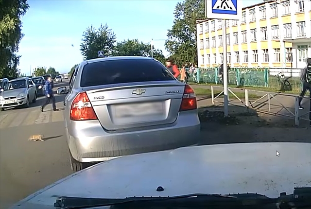 場所はロシア・オムスク州の車道。目の前に子猫がいると思ったのもつかの間、そのすぐ後に車の中に潜り込んでしまいました!!