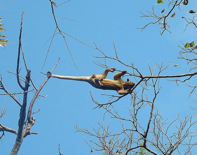 後ろ向きにすることができる足をしているので樹上の移動を容易にさせる他。正面を見たままの方向転換するといった離れ技を可能としています。また、物をつかむことができる体長と同程度ある長い尾があり、木の枝をつかんだりバランスをとる事にも使えます。