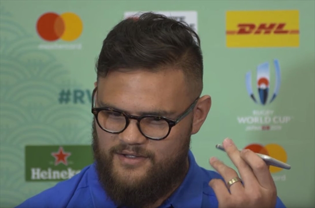 9月30日に行われていた会見に臨んでいたのは、ニュージーランド代表「オールブラックス」のアンガス・タアヴァオ選手。