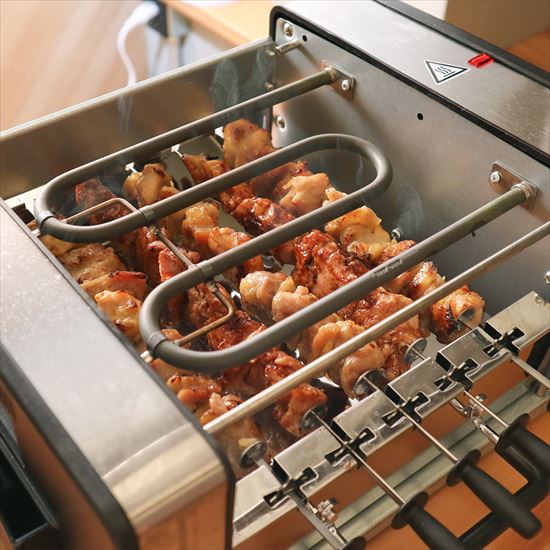 そんな肉好きの方に朗報です!なんと一台で同時に焼肉と焼き鳥が楽しめる、自動回転焼き鳥&焼肉プレート『焼き物大将』が発売されました!!