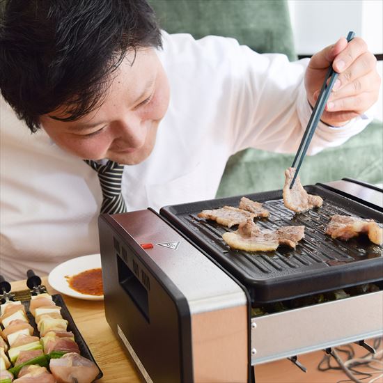 お家でお肉を焼いていて困るのが煙の存在です。煙はお肉から出る脂が熱源に直接当たることで発生しますが、この「焼き物大将」はちょっと違います!