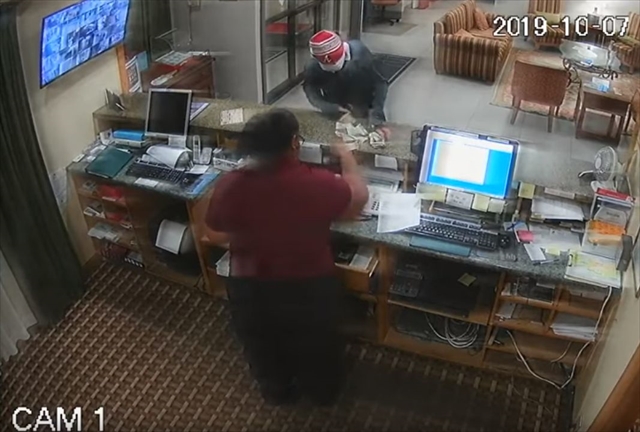 カウンターに置いていた銃のことをすっかりと忘れてしまった様子の強盗。スタッフはその一瞬を見逃しませんでした!!