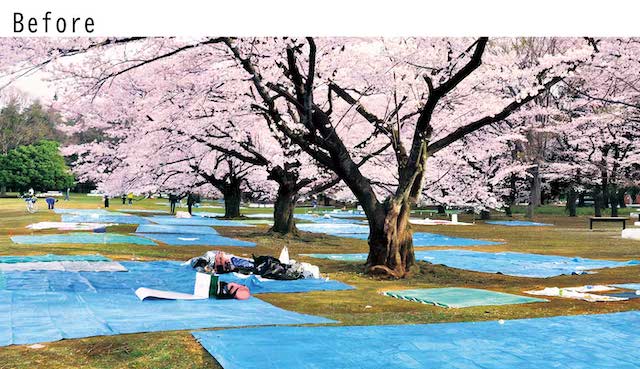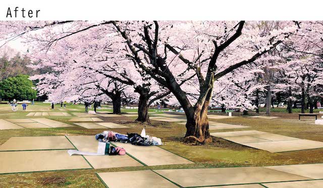 お花見の時は、桜よりも先に目に飛び込んでくるのが青色のブルーシートですよね。あまりに風情がなく、桜の風景本来の美しさが壊されているという現状を変えるために今回畳柄のレジャーシートを開発したそうです。