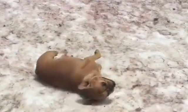 彼の名前はフレンチブルドッグのレニー(Lenny)くん。ママのtrishaelizabethさんとアメリカ・コロラド州のアスペンで冒険を繰り広げているようで、この動画はアスペンのくぼみに残る残雪で滑って遊ぶ様子を撮影したものだそうです。