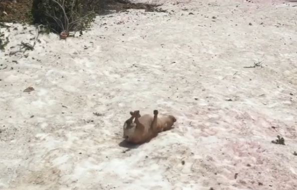 どこまでもどこまでも雪の上を滑り落ちていくワンちゃんの様子、一瞬いったい何が起きたのかと驚きますが、これハプニングじゃないんです。飼い主さんたちの笑い声からも、ワンちゃんが楽しんで滑っていることがわかります。