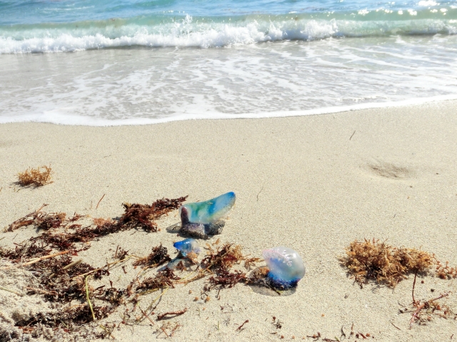 ちなみに台風なんかがきた翌日、海岸にカツオノエボシが打ち上げられていることがよくありますが、綺麗だからと言って絶対に触ってはいけません。打ち上げられても触手は健在なので、近づかないようにしましょう。