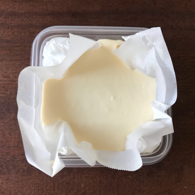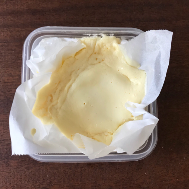 ②チーズ100g版。あっさり卵感強めでした。生クリーム200mlは固まらないので、既存の分量で是非!