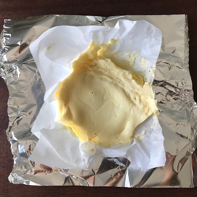 ①トースターは型から外して!柔らかいんでソーっとシートごと取り出しアルミの上に