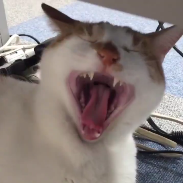 「油断は禁物ニャ」これでもかと脱力あくびをブッカかまし(笑) 課長、カワイイにも程があります!