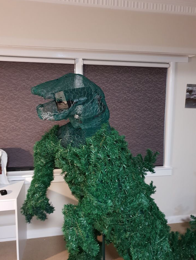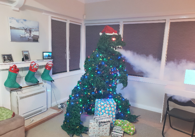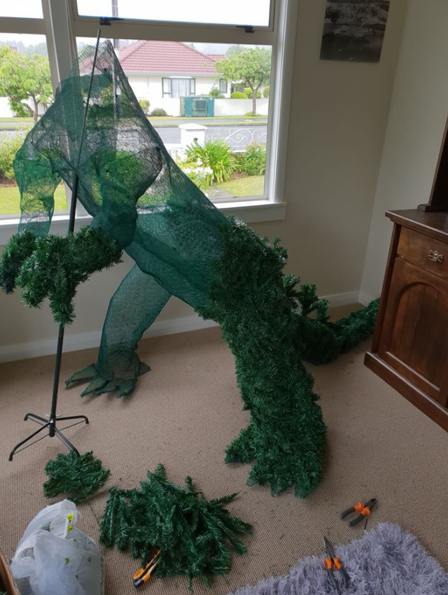 そんな中、ニュージーランド在住のスティーブン・ニューランドさんは、なんとゴジラ型のクリスマスツリーを手作りしました!