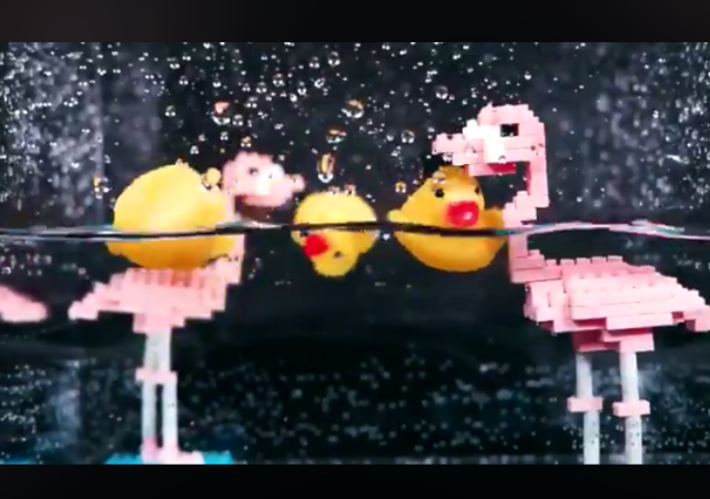 水槽でしょうか、フラミンゴのおもちゃが浮かべてある水が。そこにカップや手のひら、ボールなどを使って奏でる音は見事に米津玄師さんの『Flamingo』です!