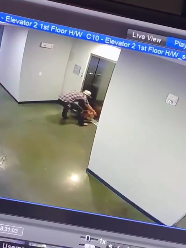 アメリカ、テキサス州ヒューストンのアパートで、動き出すエレベーターのドアにワンコのリードが引っ掛かってしまうという最悪のハプニングが発生。
