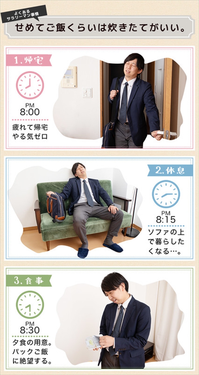 おいしい炊きたてのご飯がこれほど身近に感じられるアイテム・・仕事で疲れている、忙しい、キッチンで準備するのが面倒という方にとって最高ですね!