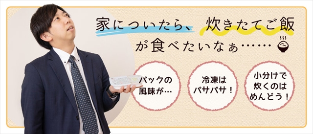 これなら、ちょっとしたすきま時間に、手軽においしい炊きたてのご飯が食べられますね!