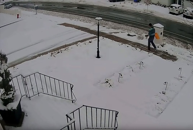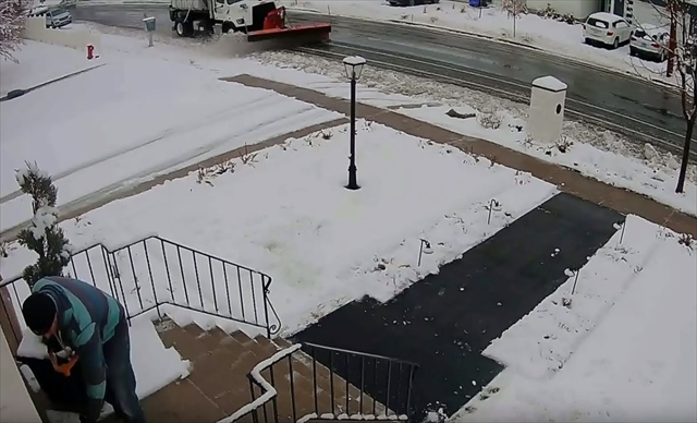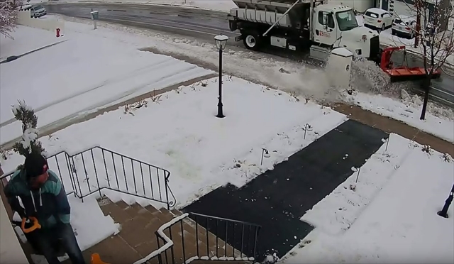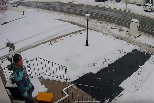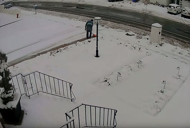 場所はアメリカのユタ州。男性が自宅の前で雪かきをしています。