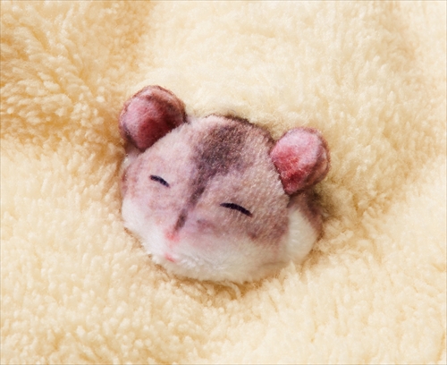 今回ご紹介するのは、おがくずから顔を出して眠るハムスターを再現したハンカチ。ハムスターたちの気持ちよさそうな寝顔がとっても可愛らしいですよ!