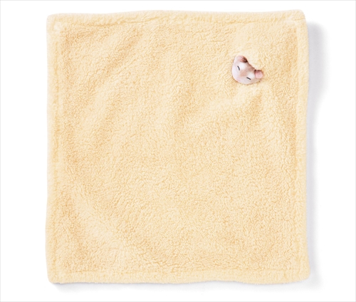 大きさは約25cm×25cm。広げるとこんな感じで端にハムスターが埋もれています。ハンカチ本体は、吸水性のよいマイクロファイバー素材を使用。