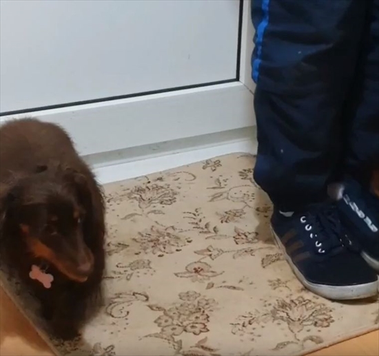 飼い主さんと一緒に帰ってきたワンコ。玄関に敷かれているマットの上で飼い主さんが足を拭こうとすると・・