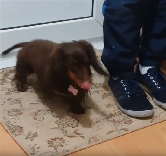 出典:YouTube(Dixie the Dachshund Wipes Her Wet Feet)