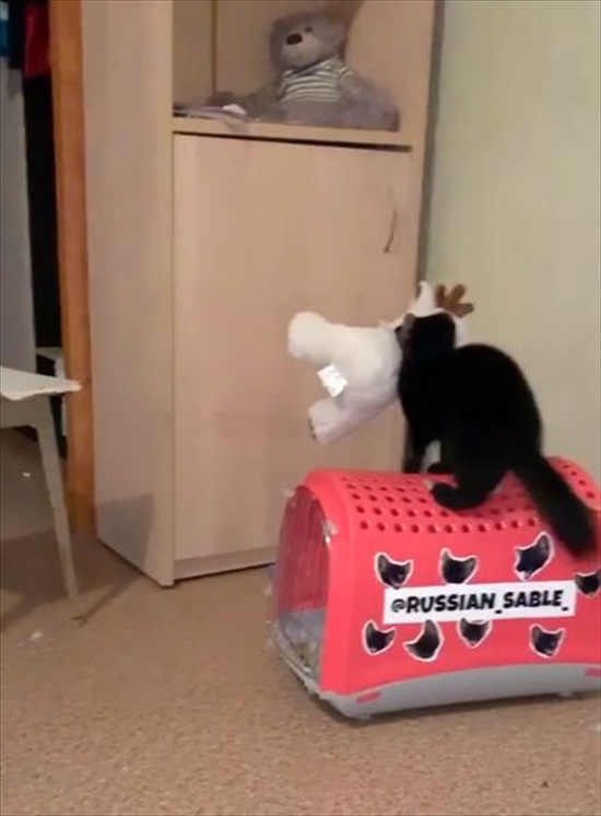 動画は、クロテン(セーブルとも呼ばれる)の様子を多数投稿しているInstagramアカウントが公開したもの。ぬいぐるみをくわえてクロテンがせっせと走る様子から始まります。