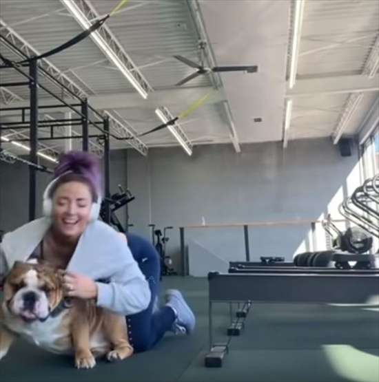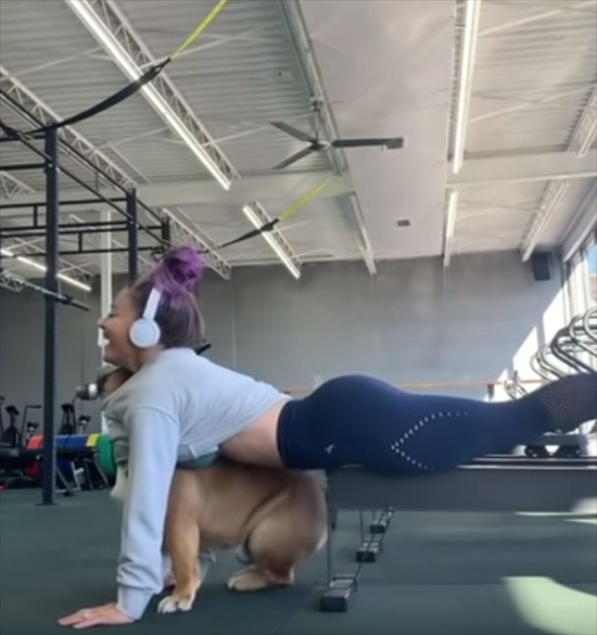 出典: YouTube(Dog Gets Inside Owner's T-Shirt While She Works Out in Gym)