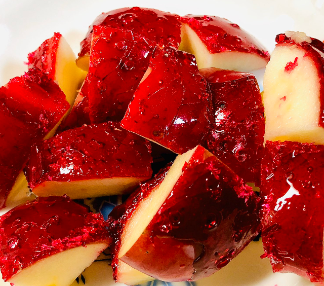 去年行ったお祭りでりんご飴屋のおっちゃんの「りんご飴は冷蔵庫で冷やして切って食べると旨いぞ!」というプレゼンで人生初りんご飴キメたんですが、冷蔵庫で冷やして切って食べてみたら飴はパリッパリ、中は甘くて酸っぱくてシャクシャク、宝石みたいで最高でどハマりしました。ありがとうおっちゃん